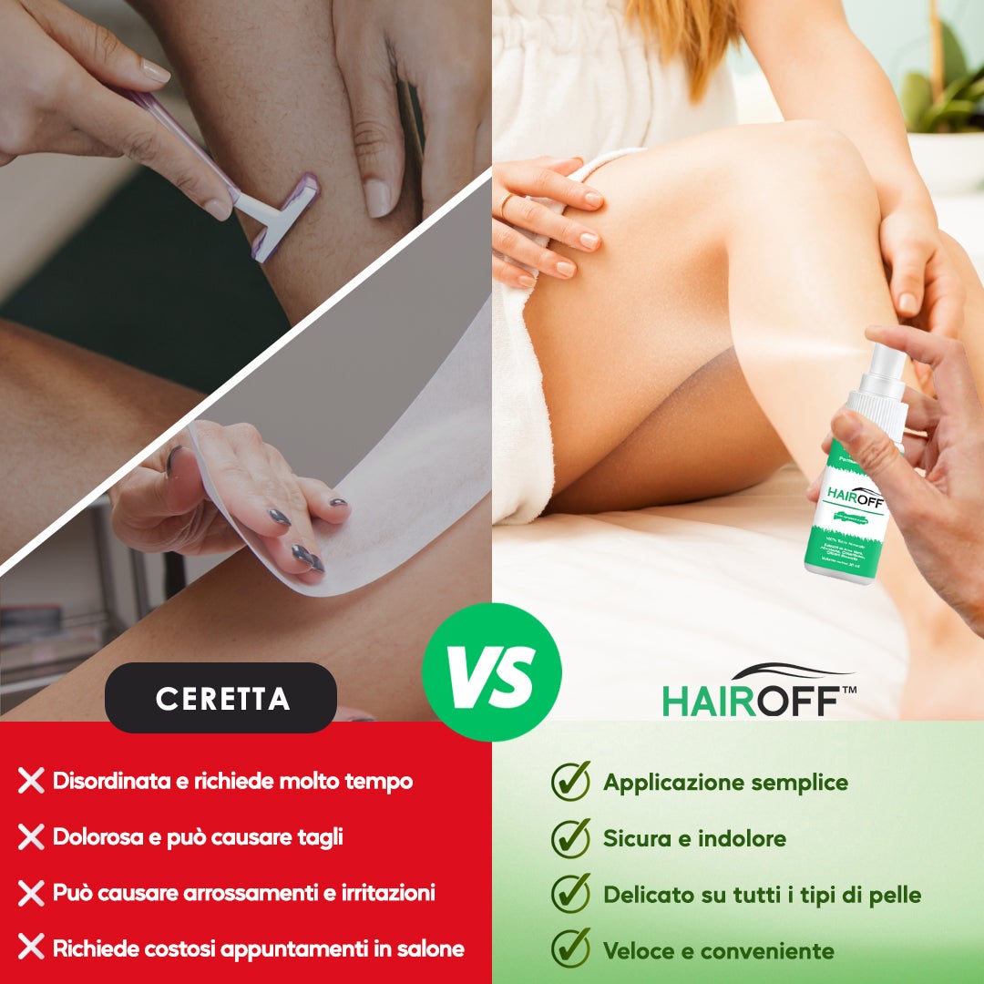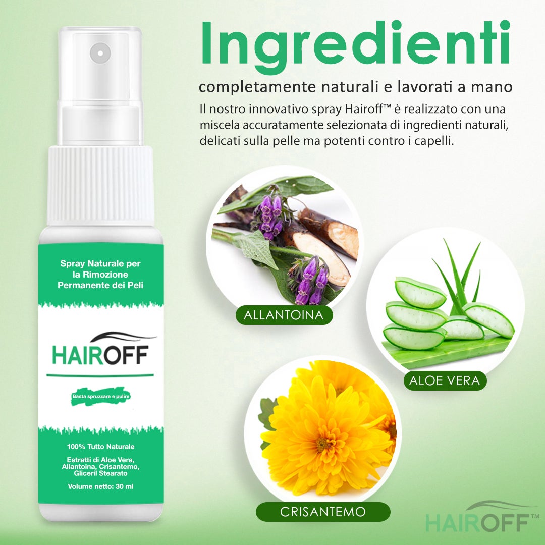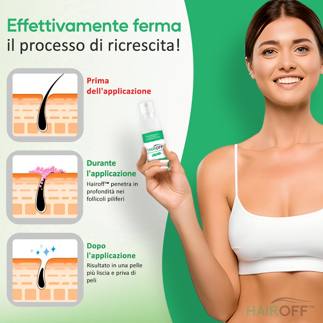 Inoltre, vorremmo offrirvi una prova di 14 giorni di HairOff™ Spray Naturale per la Rimozione Permanente dei Peli.